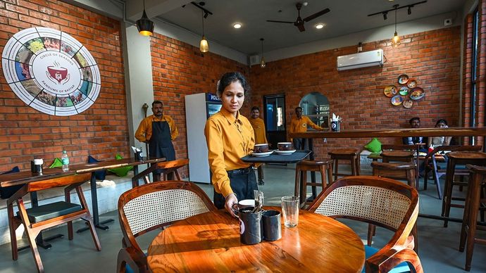 न सिर्फ यह कैफे एक अलग तरह की मिसाल कायम करता है, बल्कि इसका डिजाइन भी एक कहानी कहता है. इसकी दीवारों की नंगी ईंटों पर बस्तर में मनाए जाने वाले 12 'पंडुम' का जिक्र है. इस तरह यह परिसर लौटी हुई शांति का प्रतीक बनकर खड़ा है.
