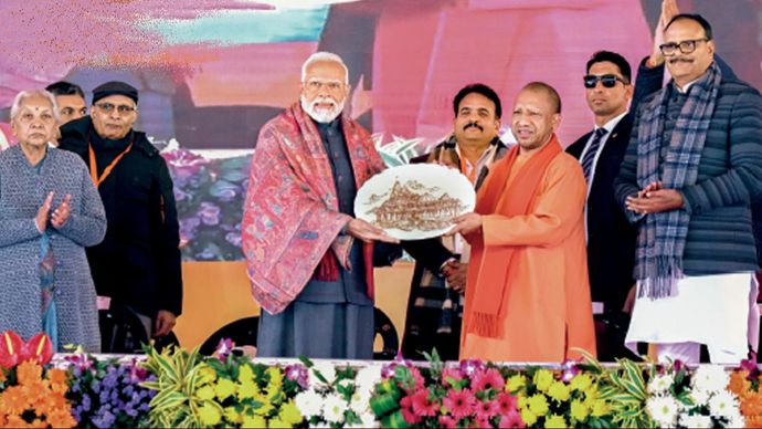 अयोध्या के राम मंदिर में बालक राम की प्राण प्रतिष्ठा से बने माहौल को सत्तारूढ़ भारतीय जनता पार्टी (भाजपा) लोकसभा चुनाव तक बनाए रखना चाहती है. इस लिहाज से प्राण प्रतिष्ठा समारोह के तीसरे ही दिन 25 जनवरी को प्रधानमंत्री नरेंद्र मोदी की पश्चिमी यूपी के जिले बुलंदशहर में सिखेड़ा गांव के चांदमारी मैदान पर रैली महज संयोग भर नहीं थी. राजनीति में प्रतीकों और चिन्हों का बड़ा महत्व होता है. प्राण प्रतिष्ठा के बाद प्रधानमंत्री की पहली जनसभा राम मंदिर आंदोलन के अगुआ रहे पूर्व मुख्यमंत्री कल्याण सिंह की कर्मस्थली बुलंदशहर में रखी गई. जैसे ही प्रधानमंत्री मोदी मंच पर पहुंचे, मुख्यमंत्री योगी आदित्यनाथ ने उन्हें खुर्जा में बनी पॉटरी भेंट की जिसपर राम मंदिर उकेरा गया था. इसके बाद भगवान राम की प्रतिमा भी भेंट की गई.
