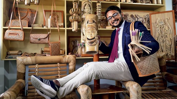 आज तस्वीर बिल्कुल बदल चुकी है. पूर्णिया के मारंग इलाके में स्थित मणिपुरी बंबू आर्किटेक्चर के हेडक्वार्टर में कदम रखते ही हवा में लकड़ी की मीठी खुशबू-सी महसूस होती है. शो-रूम खचाखच भरा है—एक तरफ सोफा सेट रखे हैं तो दूसरी तरफ नाजुक हैंडबैग. दीवारों पर टूथब्रश, थर्मस फ्लास्क, पेन होल्डर, खिलौने. सैकड़ों तरह के बांस के शिल्प सजे हुए हैं.