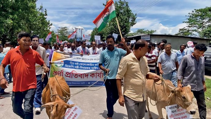 बाकी 90 गायों की कहानी तो एकदम अलग है. एक आरटीआइ से पता चला कि हजारिका की सलाह पर सात 'जन प्रतिनिधि' उन्हें किसानों में बांटने वाले थे. सूची असम के राजनैतिक दिग्गजों की थी. दो गायें भाजपा अध्यक्ष सैकिया ने लीं. तीन विधायकों के खाते में 16 गायें आईं—भुबन पेगु (10), उत्पल बोरा (4), दिगंत कालिता (2).