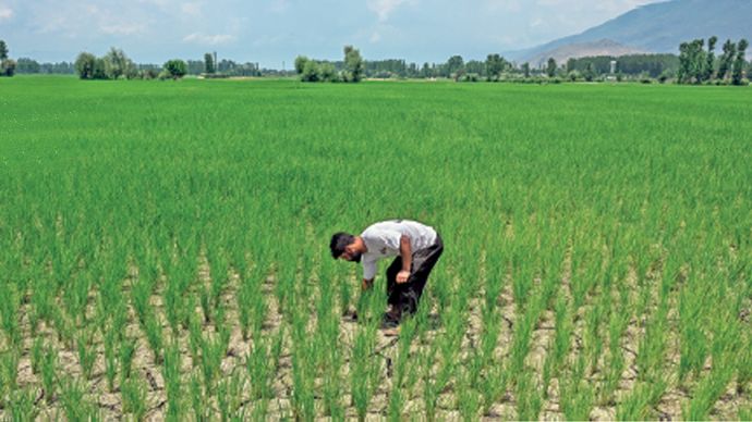 > कश्मीर के 1,32,000 हेक्टेयर धान के खेतों में से 11 फीसद पूरी तरह सूखे पड़े हैं.