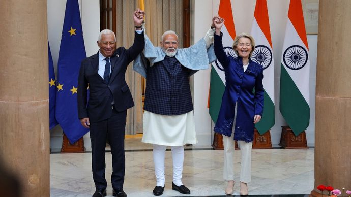 इस घोषणा पर बातचीत करने वालों ने खूब तालियां बजाईं, जिन्होंने पिछले तीन सालों का अधिकतर समय भारत के इतिहास में सबसे मुश्किल व्यापार समझौतों में से एक को अंतिम रूप देने में बिताया था. नई दिल्ली आने से पहले, यूरोपीय आयोग की अध्यक्ष उर्सुला गर्ट्रूड वॉन डेर लेयेन ने दावोस में इस संधि को 'मदर ऑफ ऑल डील्स' कहकर उत्साह बढ़ा दिया था. नई दिल्ली में, वे यूरोपियन काउंसिल के अध्यक्ष एंटोनियो कोस्टा और प्रधानमंत्री नरेंद्र मोदी और उनकी कैबिनेट के मुख्य सहयोगियों और अधिकारियों के संग फ्री ट्रेड एग्रीमेंट (FTA) पर हस्ताक्षर की गवाह बनीं.