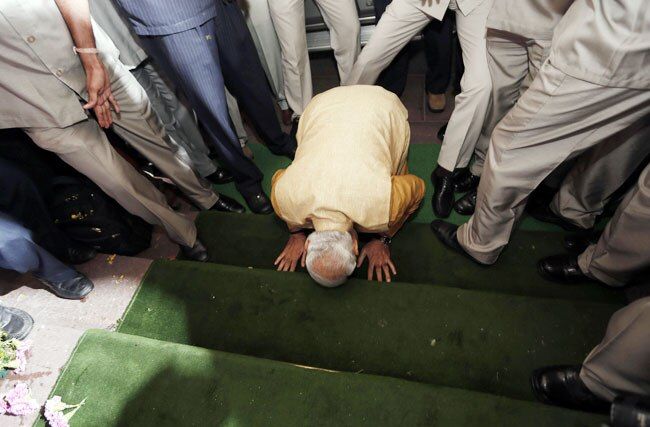बेशक, इस देश की सत्ता आज उस डिजाइनर कुर्ते से निकल रही है जो कभी गुजरात में सिला गया था. बीते दिसंबर की ही एक ठंडी शाम का किस्सा है जब राष्ट्रपति भवन ने अपने सेरेमोनियल हॉल की नई विंग के उद्घाटन का आयोजन रखा था. लुटियन की दिल्ली के सारे असरदार सत्ताधीश यहां मौजूद थेः मंत्रियों, राज्यपालों से लेकर सेना प्रमुखों और खुद राष्ट्रपति तक. घड़ी के कांटे जैसे ही नियत समय पर पहुंचे, अपने ट्रेडमार्क चूड़ीदार-कुर्ते में टहलते हुए प्रधानमंत्री भीतर आए. कमरे में चल रही चटर-पटर अचानक सन्नाटे में तब्दील हो गई. वहां जुटे वीआइपी इस महानायक की निगाह में आने के लिए धक्का-मुक्की करने लगे. इसमें कोई शक नहीं कि 2014 में मोदी विशाल शख्सियत के तौर पर उभरे हैं. सत्तर के दशक में इंदिरा गांधी को छोड़ दें तो गठबंधन सरकारों के तले ढाई दशक लंबा दौर देखने के बाद पहली बार भारत अपने सबसे ताकतवर प्रधानमंत्री का गवाह बना है जो भारी बहुमत के साथ आया है.
