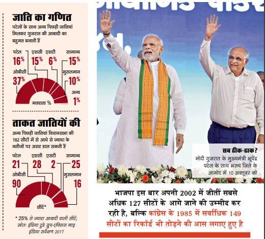 इससे भी महत्वपूर्ण बात यह है कि वे पाटीदार हैं और उन्हें मुख्यमंत्री बनाकर 2017 में पार्टी के खिलाफ विद्रोह करने वाले पाटीदार समुदाय के असंतुष्ट तत्वों को पार्टी ने एक बड़ा संकेत दिया था. मोदी ने कहा है कि अगर भाजपा जीतती है तो पटेल ही फिर से मुख्यमंत्री बनेंगे. पार्टी इस जाति समूह से अपने पक्ष में बड़े पैमाने पर वोटों की उम्मीद कर रही है, जो आबादी का 16 प्रतिशत है और 20-30 सीटों के परिणाम को प्रभावित कर सकता है.