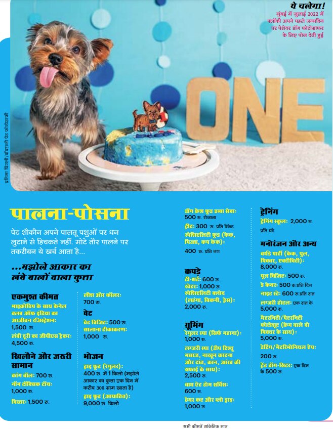 जिस गार्डन पाइप से कार की धुलाई होती थी, कभी उसी से पालतू पशुओं को नहला देना काफी होता था. नहलाने के बाद आप उन्हें स्वाभाविक रूप से सूखने के लिए छोड़ देते थे. आज, पालतू पशुओं की देखभाल के व्यवसाय में जितना आडंबर है वह आपको चौंका सकता है क्योंकि पालने वाले अपने पालतू पशुओं के साथ वैसा ही लाड़-प्यार दिखाते हैं जैसा वे इनसानों के साथ दर्शा सकते हैं. चाहे वह डीप टिश्यू मसाज हो या फिर उनके पंजों को नम और मुलायम रखने के लिए पॉ बटर मसाज, कुत्तों और बिल्लियों की देखभाल और दुलार का तरीका शायद ही कुछ और हो. उनके हेयरकट 2,400 रु. से और स्पा 1,900 रु. से शुरू होते हैं. कुत्ते के आकार और नस्ल के साथ कीमतें बदलती रहती हैं.