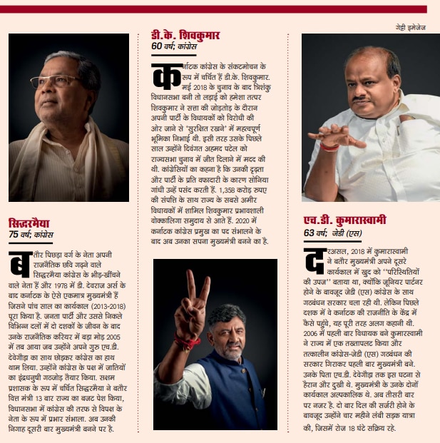 कुल मिलाकर, पार्टी एकजुट है और अपेक्षाकृत एकजुट मशीन है.’’ दरअसल कांग्रेस में मुख्यमंत्री पद की क्षमता वाले कई नेता हैं. इनमें पार्टी के राष्ट्रीय अध्यक्ष 80 वर्षीय मल्लिकार्जुन खड़गे भी हैं, जो उत्तर कर्नाटक से आते हैं. हालांकि, खड़गे ने साफ कर दिया है कि वे दौड़ में नहीं हैं. वे पूछते हैं, ''कांग्रेस अध्यक्ष के नाते जब मैं विभिन्न राज्यों में मुख्यमंत्री नियुक्त करने की हैसियत में हूं, तो फिर मुझे खुद मुख्यमंत्री बनने में दिलचस्पी क्यों होगी?’’