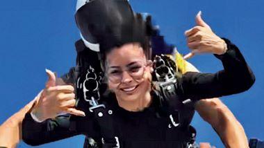 परिवार के साथ छुट्टियां बिताने के दौरान दुबई में स्काईडाइविंग