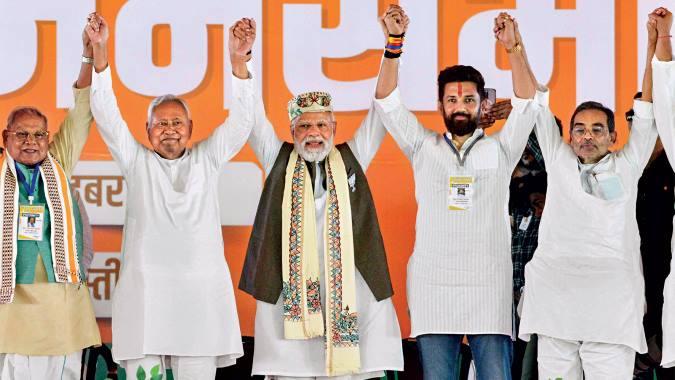 एनडीए की रणनीति यह रही कि विपक्ष के मुद्दों पर ध्यान देने की जगह अपनी बात जनता तक पहुंचाएं, जिससे भी विपक्ष के आरोप ज्यादा असरदार साबित नहीं हुए. भाजपा के एक बड़े नेता ने बिहार की चार-स्तरीय चुनावी रणनीति के बारे में बताया—सहयोगियों के साथ बातचीत बढ़ाना और उसे गहराई प्रदान करना; सामाजिक समीकरणों का दायरा बढ़ाने के लिए नए जनाधार तक पैठ बनाना; सिर्फ पार्टी उम्मीदवारों के लिए ही नहीं बल्कि सहयोगियों के पक्ष में भी अधिकतम मतदान पक्का करना; और विरोधियों के कथित कुशासन को दिखाने के लिए पीएम मोदी की इमेज का इस्तेमाल, साथ ही बेहतर, कुशल प्रशासन का वादा करना.