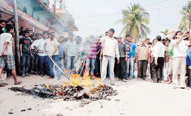 घंटे भर के भीतर वहां करीब एक हजार लोगों की भीड़ जमा हो गई और लोगों ने मेधी और गांव के एक बड़े सिल्क व्यापारी दीपक कुमार के घरों पर हमला कर दिया. भीड़ जब मेधी के घर को तहस-नहस करने के बाद लौट रही थी, तो पुलिस से उनका टकराव हो गया और पुलिस ने गोलियां चला दीं. इस झड़प में दो सुरक्षा कर्मियों समेत दस लोग घायल हो गए. स्थिति की गंभीरता को देखते हुए कर्फ्यू लगा दिया गया, जिसे तीन दिन बाद हटा लिया गया.