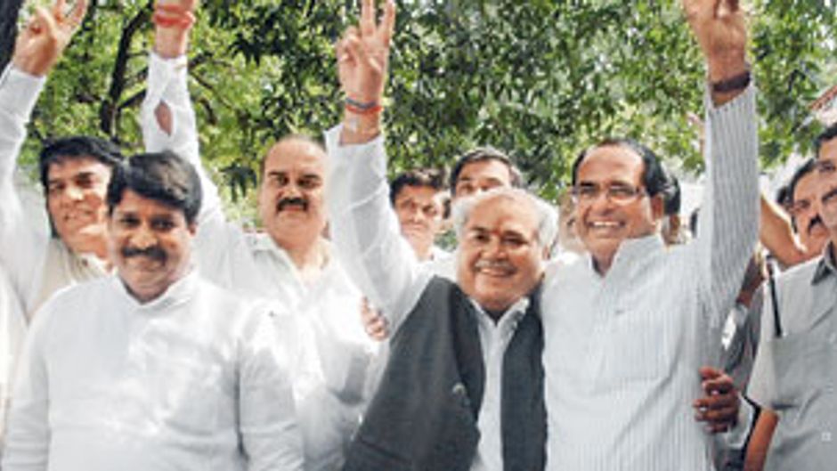 चौहान काफी खुश दिख रहे थे. मोदी लहर और उनके करिश्मे ने मिलकर आम चुनावों में बीजेपी को एकतरफा जीत दिलाई और उसे मध्य प्रदेश की 29 में से 27 सीटें मिलीं. 2009 के आम चुनावों में बीजेपी को राज्य में 16 सीटें हासिल हुई थीं. मोदी-चौहान जोड़ी इतनी ताकतवर साबित हुई कि विदिशा से इस बार फिर चुनाव लड़ रहीं सुषमा स्वराज ने अपने कांग्रेसी प्रतिद्वंद्वी और कांग्रेस महासचिव दिग्विजय सिंह के भाई लक्ष्मण सिंह को 4,10,698 वोटों के जबरदस्त अंतर से हराया. इसी तरह पूर्व केंद्रीय मंत्री सुमित्रा महाजन ने मध्य प्रदेश की इंदौर सीट से लगातार आठवीं बार जीतकर इतिहास रच दिया, वह भी 4,66,901 वोटों के भारी अंतर से.