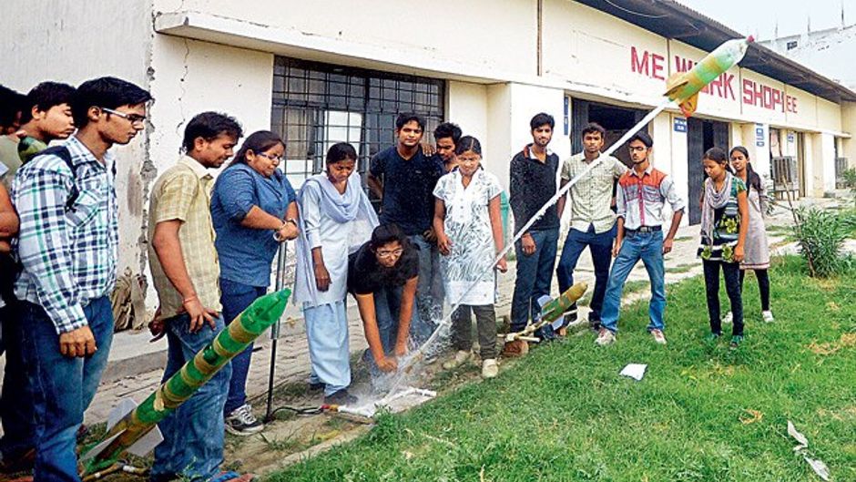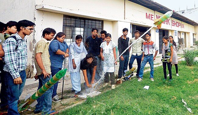 उत्तर प्रदेश के एक कॉलेज में मैदान तो क्रिकेट का है लेकिन जंग मिसाइलों से लड़ी जा रही है. मैदान के एक कोने में आधा दर्जन मिसाइलें तनकर खड़ी हैं. ये बारूद ले जाकर तबाही मचाने वाली मिसाइलें नहीं हैं बल्कि इन्हें दो लीटर वाली कोल्ड ड्रिंक की खाली प्लास्टिक की बोतलों से बनाया गया है. बोतल में नीचे से छेद करके इसमें एक वॉल्व से पीवीसी पाइप जोड़कर मिसाइल का आकार दिया गया है.