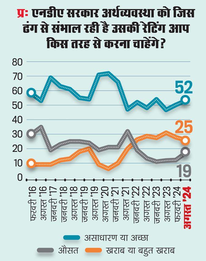 विडंबना यह है कि नरेंद्र मोदी सरकार के आर्थिक प्रबंधन को लेकर जन धारणा बदल गई है, वह भी तब जब अर्थव्यवस्था ने वित्त वर्ष 24 में 8.2 फीसद की चौंकाने वाली उच्च वृद्धि दर हासिल की. अर्थव्यवस्था न केवल कोविड-19 महामारी से उबर चुकी है, बल्कि पूंजी खर्च में सरकार के लगातार निवेश और खुदरा क्षेत्र में भारी उछाल से वृद्धि दर के इस वित्त वर्ष और अगले साल करीब 7 फीसद पर बरकरार रहने की संभावना जताई गई है.