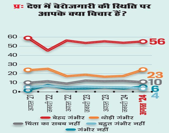 इस पृष्ठभूमि में, इसमें कोई हैरानी नहीं कि 78.3 फीसद उत्तरदाता भारत में बेरोजगारी की स्थिति को गंभीर मानते हैं, यह संख्या फरवरी के 71 फीसद से अधिक है. मसले की गंभीरता को देखते हुए वित्त मंत्री निर्मला सीतारमण ने बजट 2024 में 'प्रधानमंत्री के पैकेज’ की घोषणा की है, जिसमें रोजगार से जुड़ी पांच बड़ी योजनाएं शामिल हैं. इसके लिए अगले पांच साल के दौरान रोजगार बढ़ाने और 4.1 करोड़ युवाओं के कौशल विकास के लिए 2 लाख करोड़ रुपए का महत्वाकांक्षी परिव्यय रखा गया है.