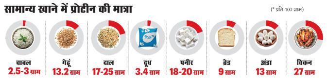 प्रोटीन शरीर के लिए आवश्यक कई तरह के एमिनो एसिड से बने होते हैं. वे मांसपेशियों, हड्डियों, त्वचा और बाल समेत कोशिका और टिश्यू के महत्वपूर्ण घटक होते हैं. वे स्वस्थ शरीर के लिए नितांत आवश्यक होते हैं, और मांस, मछली, पोल्ट्री, डेरी उत्पाद, सूखे मेवे, बीन्स, दाल और कुछ हद तक अनाजों में पाए जाते हैं. इंडियन काउंसिल ऑफ मेडिकल रिसर्च-नेशनल इंस्टीट्यूट ऑफ न्यूट्रिशन (आइसीएमआर-एनआइएन) के मुताबिक, सेहतमंद व्यक्तियों को अपने वजन के प्रति किलोग्राम पर रोजाना 0.83 ग्राम प्रोटीन लेना चाहिए. इस तरह 60 किलोग्राम वजन के वयस्क को रोजाना करीब 50 ग्राम प्रोटीन लेना चाहिए.