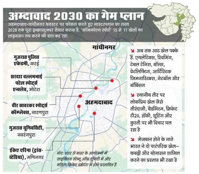 पांच-सात किमी दायरे में एथलीट्स विलेज 5,000 से ज्यादा खिलाडिय़ों और सपोर्ट स्टाफ के लिए तैयार किया जाएगा. इसमें ज्यादातर स्टूडियो अपार्टमेंट होंगे. एयर कनेक्टिविटी भी बढ़ाई जा रही है. 2024-25 में सरदार वल्लभभाई पटेल इंटरनेशनल एयरपोर्ट से करीब 1.34 करोड़ यात्रियों ने सफर किया. 2026 तक पूरा होने वाला नया इंटीग्रेटेड टर्मिनल क्षमता को दोगुना करने की उम्मीद है.