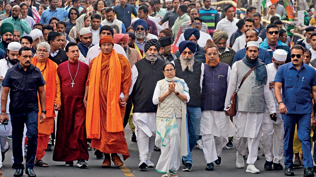 पहले भाजपा के बहुसंख्यकवादी राष्ट्रवाद के खिलाफ पहला जवाब पंथनिरपेक्षता के सिद्धांत को बनाए रखने के संवैधानिक दायित्व के इर्द-गिर्द एकजुट होकर दिया गया. वे राजनैतिक दल भी अब इस पर अड़े नहीं रहे जो इंडिया (इंडियन नेशनल डेवलपमेंटल इन्क्लूसिव अलायंस) गुट में साथ आए हैं. कुछ पार्टियां अलग समर्थन समूह बनाने की गरज से धर्म को दूसरी पहचानों के साथ मिलाने की कोशिश कर रही हैं, तो कुछ अन्य पार्टियां धर्म को शासनकला से अलग रखने का दिखावा तक नहीं कर रही हैं. मसलन, पश्चिम बंगाल की मुख्यमंत्री ममता बनर्जी ने अयोध्या में प्राण प्रतिष्ठा का बहिष्कार किया, पर उसी दिन वे विभिन्न धर्म प्रमुखों के साथ सद्भाव जुलूस की अगुआई करने से पहले कोलकाता के कालीघाट मंदिर गईं. मोदी की राम परियोजना का जवाब उन्होंने बांग्ला सांस्कृतिक पहचान को सामने रखकर देने की कोशिश की.