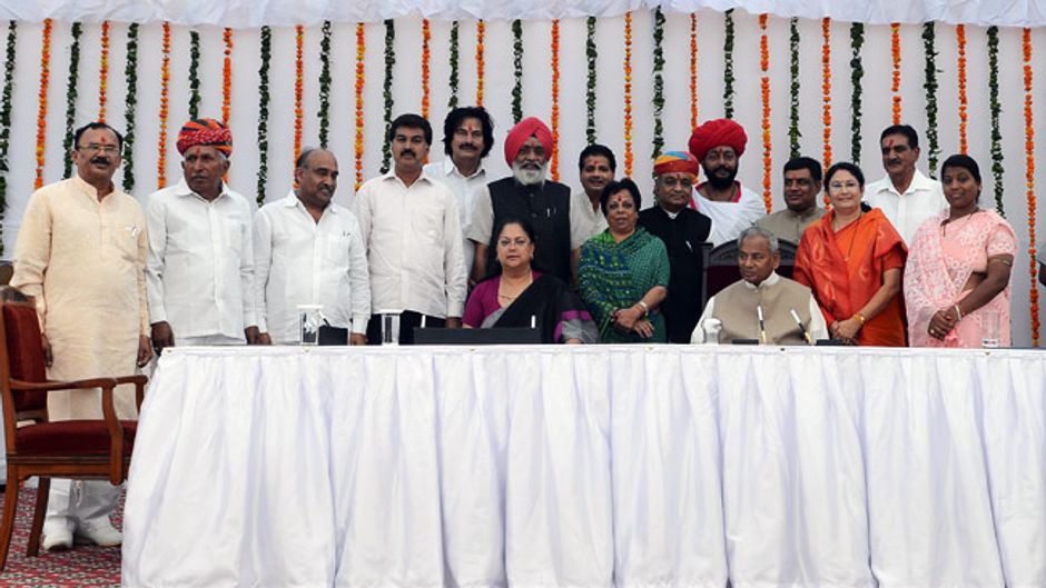 राजे ने नरपत सिंह राजवी को भी मंत्री नहीं बनाया. राजवी बीजेपी के कद्दावर नेता दिवंगत भैरों सिंह शेखावत के दामाद हैं. इससे उनका अपने ससुर की राजपूत विरासत का वाहक बनने का सपना अधूरा रह गया है. उनकी बजाए राजे ने राजपाल सिंह को मंत्रिमंडल में शामिल किया, जो आरएसएस से जुड़े होने के बावजूद उनके लिए ज्यादा मुश्किल पैदा नहीं करेंगे. राजपाल को राजे ने शहरी विकास और आवास जैसे महत्वपूर्ण महकमे की जिम्मेदारी दी है. उन्होंने राव राजेंद्र सिंह को भी मंत्री नहीं बनाया. वे अपनी बुद्धिमत्ता और स्वतंत्र नजरिए की वजह से राजे के लिए मंत्रिपरिषद में सर्वानुमति बनाने की राह में रोड़ा बन सकते थे. उन्हें शामिल न करके राजे ने पूर्वाग्रह-रहित और ताॢकक विचारों से मंत्रिपरिषद को वंचित कर दिया है.