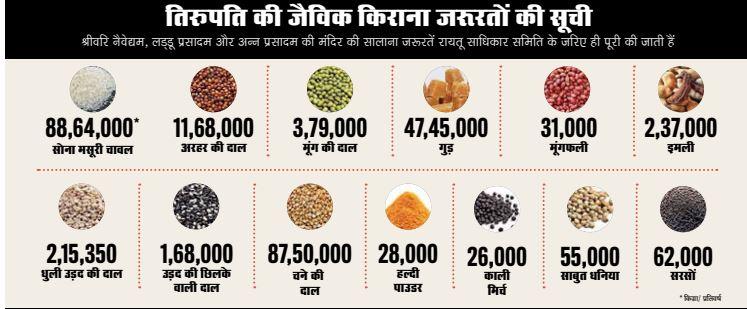 नैवेद्यम यानी भगवान को लगाए जाने वाले भोग के लिए इस्तेमाल 60 किलो मक्खन और मंदिर के दीयों के लिए तेल भी टीटीडी की गौशाला से आता है. गिर, साहीवाल, कांकरेज और थारपारकार सरीखी नस्लों की करीब 108 देसी गायें गौशाला में और लाई गई हैं. इसके अलावा 500 और लाई जाने वाली थीं, पर देश भर के मवेशियों में लंपी त्वचा रोग के प्रकोप की वजह से उन्हें लाने की योजना को फिलहाल मुल्तवी कर दिया गया.