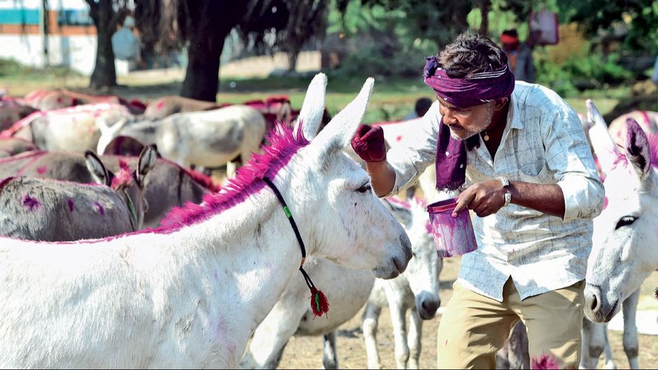 भारत में खानाबदोश जातियां गधों को पालती थीं—गुजरात के वंजारा, प्रजापति और ओढ़ समुदाय इनमें शामिल थे. यही वजह है कि इन समुदायों के लोग आज भी गधों के कारोबार में शामिल दिखते हैं. समय के साथ, ये समुदाय सामाजिक सीढ़ी पर ऊपर चढ़े और गधे पीछे छूट गए. वौठा के विश्वसनीय सूत्रों का दावा है कि स्थानीय लोग और जिला प्रशासन जातिगत मूल्यों और गधे से जुड़ी 'मूर्खता' की सदियों पुरानी धारणाओं के कारण गधे के मेले का मजाक उड़ाते हैं. इससे बेचारे गधों का ही नुक्सान हो रहा है. गांव के एक कर्मचारी कहते हैं, ''गांव की 3,000 लोगों की आबादी को किसी भी तरह से मेले से लाभ नहीं हुआ है. वौठा में आज कोई गधे का व्यापारी नहीं है. इसके अलावा, इससे कोई राजनैतिक लाभ भी नहीं मिल सकता है.'' जैसे-जैसे गुजरात भविष्य की ओर बढ़ रहा है, इसकी धरती से गधों के कदमों के निशान मिटते जा रहे हैं.