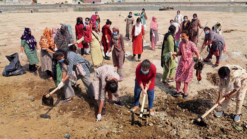 > मशीनों की बजाय हाथों से साबरमती की गाद की सफाई के अभियान में हजारों नागरिक आगे आए.