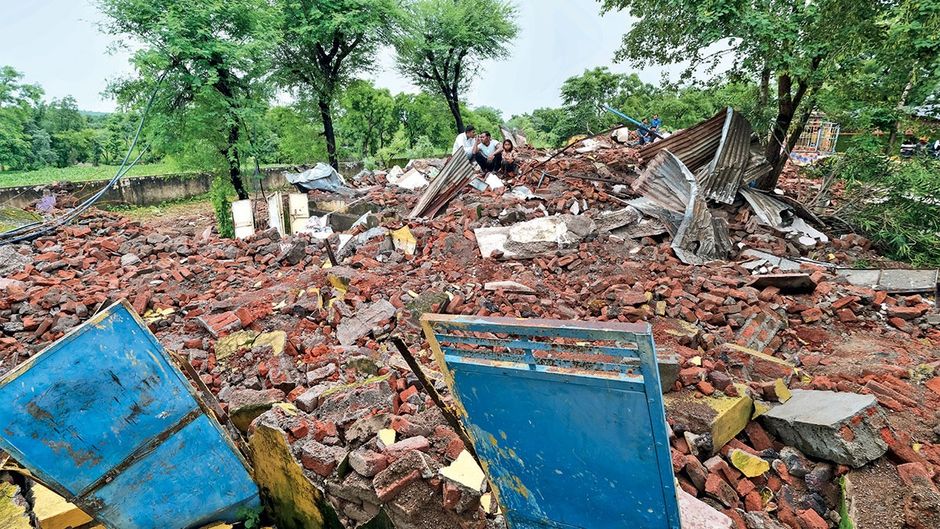 बारां जिले के रारोती गांव का सरकारी स्कूल 23 जुलाई की रात मलबे के ढेर में बदल गया. सरकार ने इसे उत्कृष्ट विद्यालय का दर्जा दे रखा है मगर यहां के जर्जर हो चुके आठ कमरे इसकी 'उत्कृष्टता' की कहानी बयान करते हैं. हालत यह है कि यहां एक भी कमरा बच्चों के बैठने लायक नहीं है.