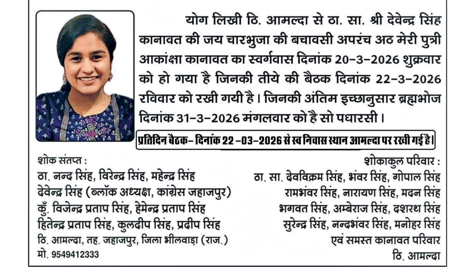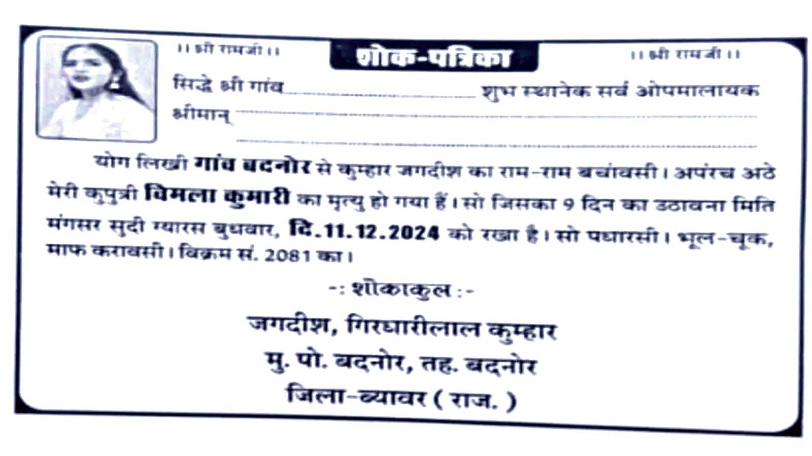 राजस्थान के भीलवाड़ा जिले के आमल्दा गांव में अपनी बेटी के प्रेम विवाह से आहत एक पिता ने उसे जीते-जी 'मृत' घोषित कर दिया. स्थानीय राजनीति में सक्रिय पिता ने पहले तो बेटी को मनाने की हरसंभव कोशिश की, समझाया-बुझाया, यहां तक कि गुमशुदगी की रिपोर्ट भी दर्ज करवाई.