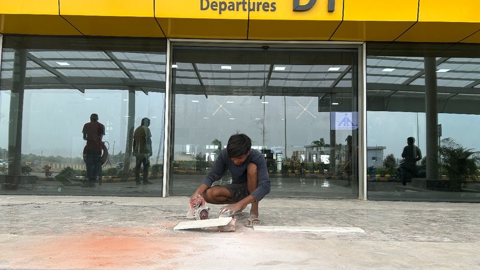 मगर इस मौके पर इसी एयरपोर्ट कैंपस की दक्षिणी चारदीवारी से सटे गांव गोआसी में एयरपोर्ट और हवाई उड़ान को लेकर न कौतुहल है, न उत्साह. इसी गांव के संजय कुमार मेहता हमें एयरपोर्ट कैंपस के अंदर झांकने को कहते हैं, जहां उनके और उनके दो भाइयों के पक्के मकान हैं. उदास होकर वे बताते हैं, “हमारा मकान अंदर चला गया. हम नहीं चाहते थे, मगर सरकार ने एयरपोर्ट के लिए हमसे हमारी जमीन, हमारा घर सब ले लिया.”