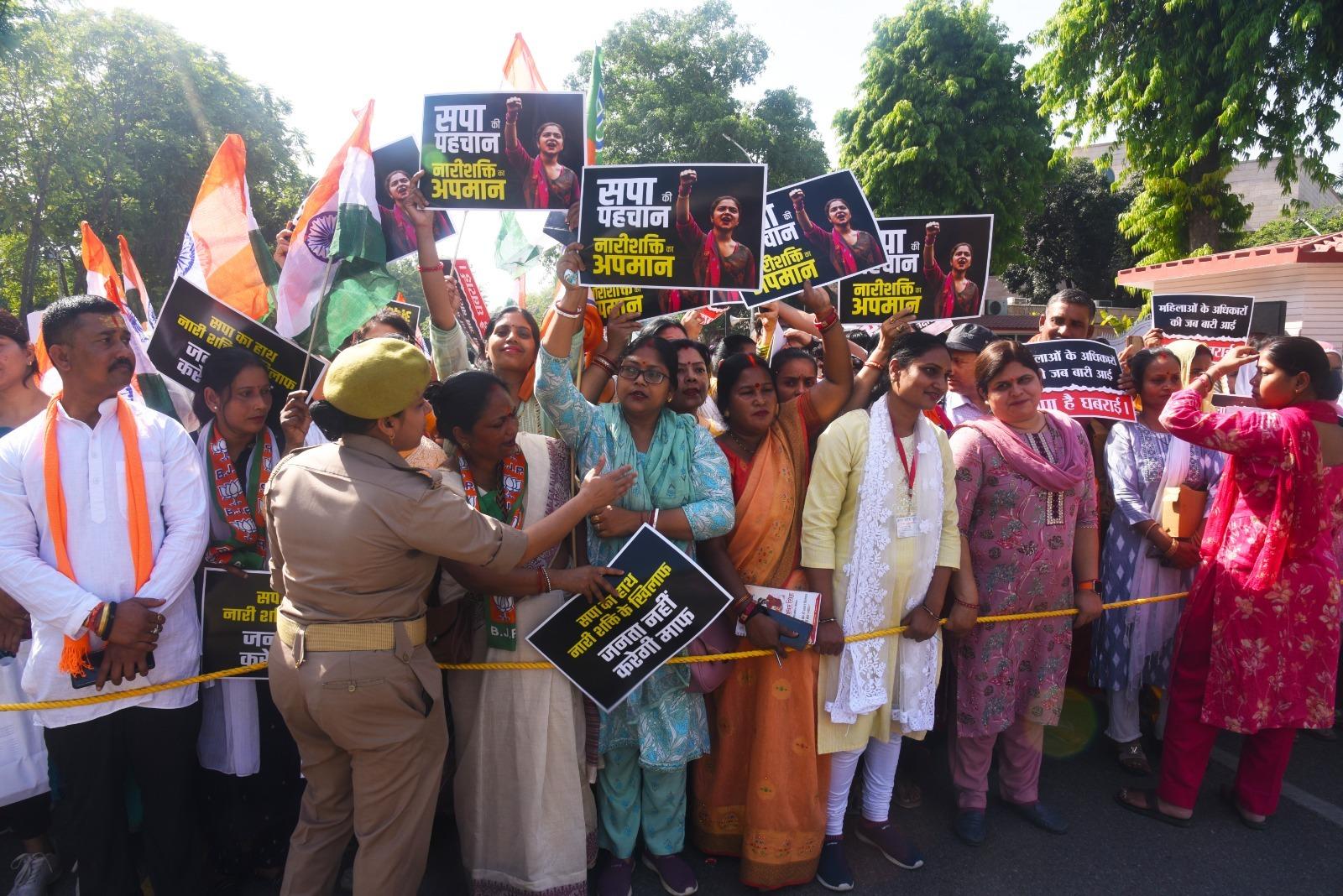 सुबह की तेज धूप अभी पूरी तरह चढ़ी भी नहीं थी कि 21 अप्रैल को राजधानी लखनऊ की सड़कों पर नारों की गूंज फैलने लगी. सुबह नौ बजे 5 कालीदास मार्ग स्थित मुख्यमंत्री आवास से निकलकर सिविल हॉस्पिटल होते हुए विधान भवन की ओर बढ़ता महिलाओं का विशाल हुजूम सिर्फ एक रैली नहीं, बल्कि एक राजनीतिक संदेश था. हाथों में तख्तियां, चेहरों पर आक्रोश और कदमों में तेज़ी- “बहन-बेटियों का अपमान नहीं सहेगा हिंदुस्तान” जैसे नारे हवा में तैर रहे थे.